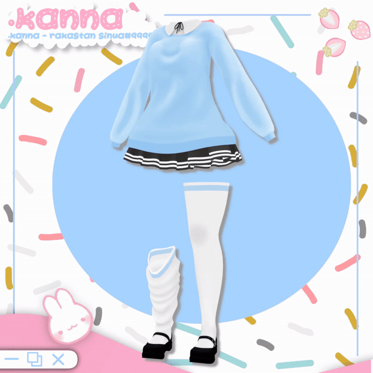 The outfit is comprised of: Socks, Skirt, Panties, Cardigan